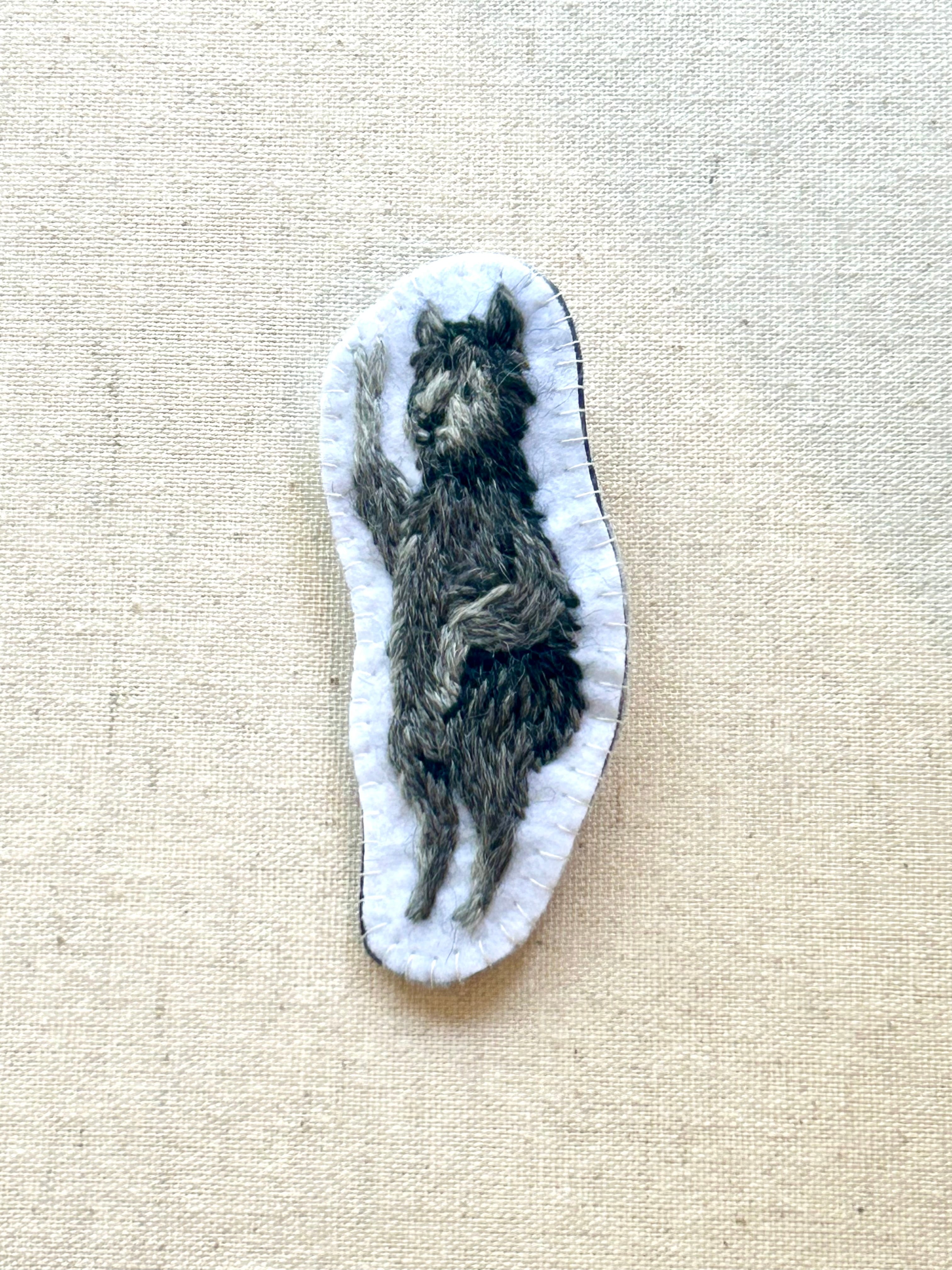 手を振る黒いリャマのブローチのオーダー制作をさせていただきました。